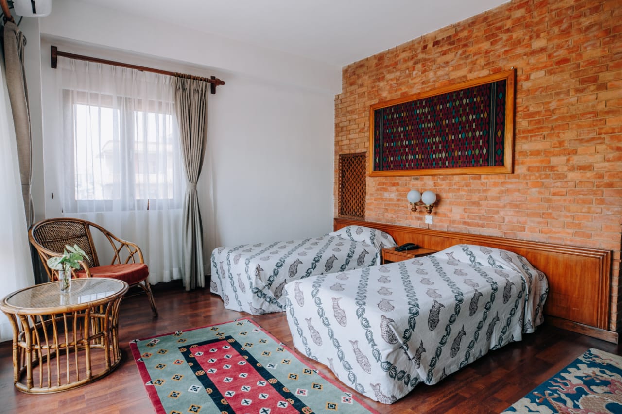 All rooms at the hotel are southward facing with a balcony that overlooks the Kathmandu valley. Locally sourced wooden and bamboo furniture provides a special touch to our rooms.